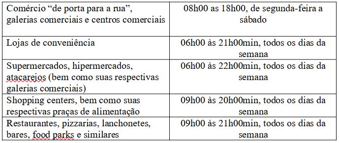 Art. 8º. As lojas de conveniência, os supermercados, hipermercados, atacarejos (bem como suas respectivas galerias comerciais) poderão abrir e funcionar nos horários estabelecidos no Anexo I deste Decreto, desde que atendidas as regras e protocolos previstas no Anexo II deste Decreto.